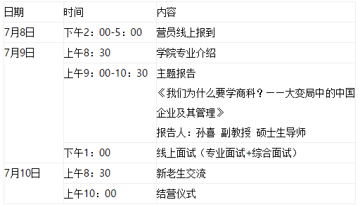 在夏令营活动期间开展优秀营员的选拔考核工作。优秀营员选拔考核分两个部分进行,即:专业面试及综合面试。