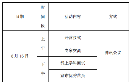 (四)网上报名截止后,我校将进行材料审核,获得入营资格学生将收到入营通知,请保持通讯畅通。